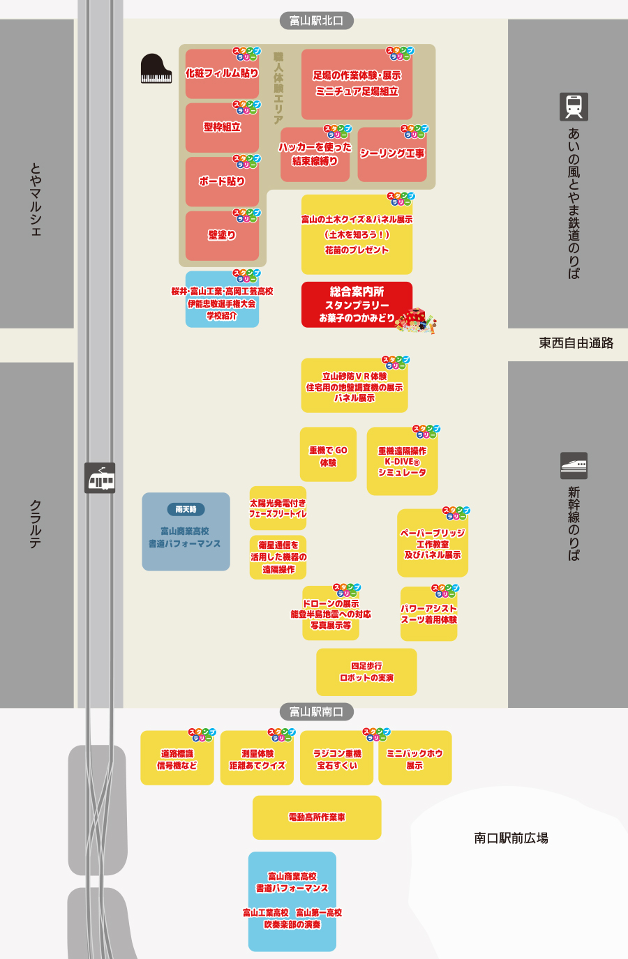 (富山駅南北自由通路および南口駅前広場)